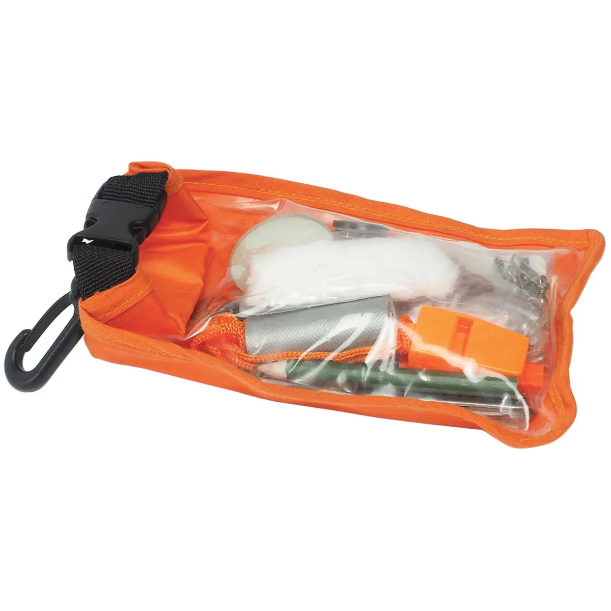 - 16-piece survival pack designed for outdoor use